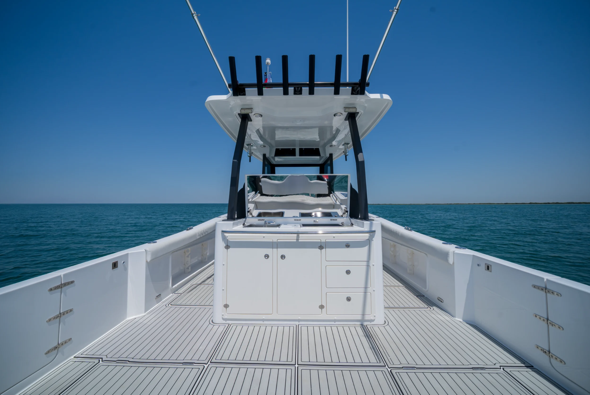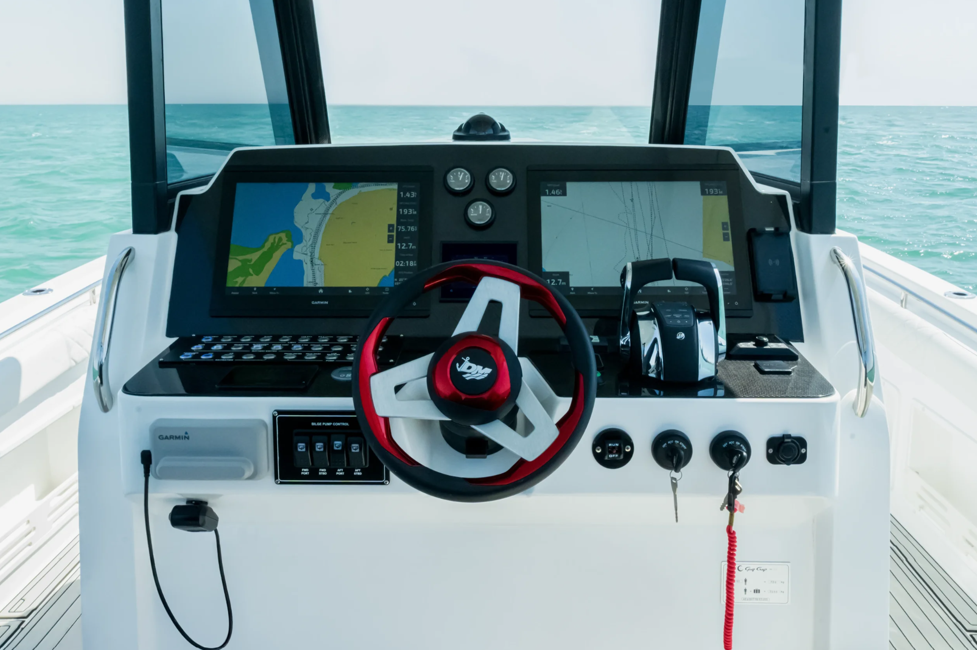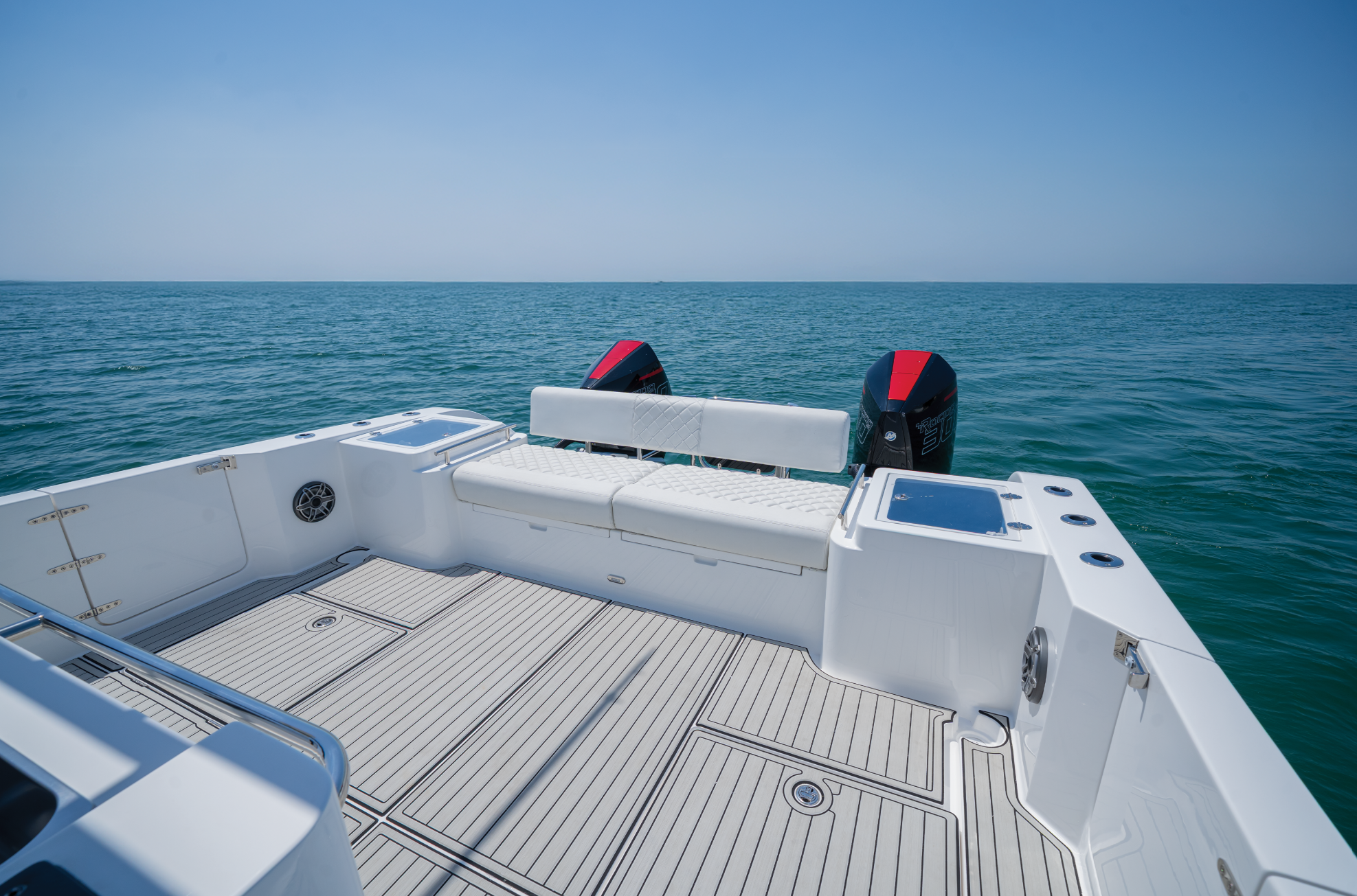 Designed for performance enthusiasts, the 35CC features an advanced step hull for fuel efficiency and smooth cruising. Its 3.2m wide deck, twin fish boxes, side door, and swim ladder make it ideal for fishing and day cruising on East African waters.